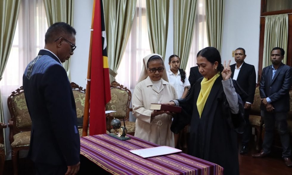 Serimónia tomada de pose ne’e realiza iha Díli, ho partisipasaun husi dirijente no funsionáriu sira iha área justisa, ne’ebé marka momentu importante ida iha esforsu atu haforsa instituisaun judisiáriu iha Timor-Leste.
