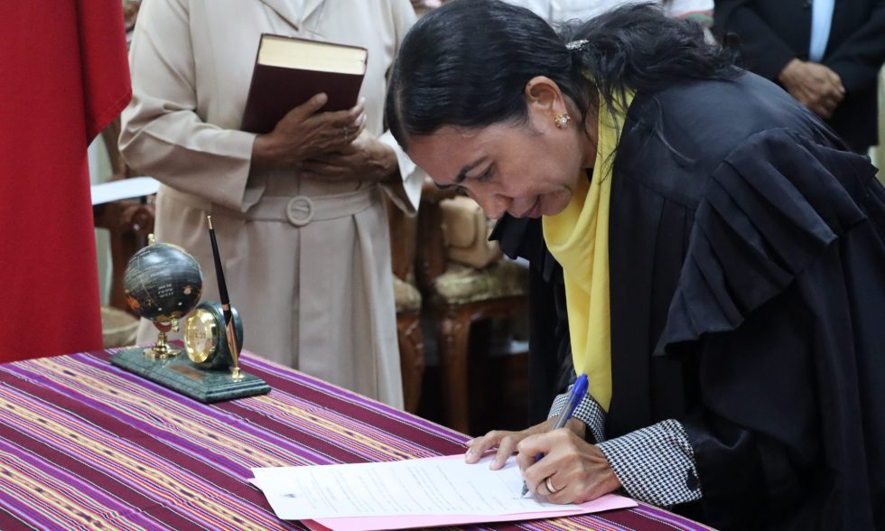 Sua Excelência Prezidente Tribunal de Recurso, Dr. Afonso Carmona, fó tomada de pose ba Dra. Zulmira Auxiliadora Barros da Silva atu exerce funsaun hanesan Juíza Sekretária do Conselho Superior da Magistratura Judicial iha rejime tempu parsial.